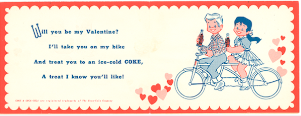 Believe it or not, giving your crush or classmate a commercialized Valentine’s Day card is not a newfound notion. This tradition has been around, well, nearly as long as Coca-Cola has. No Valentine? No worries. A can of Coke will make you feel all bubbly inside.